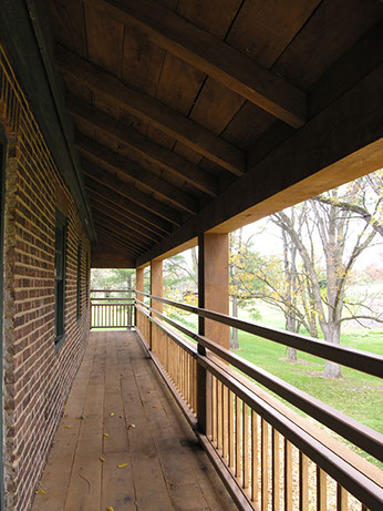 The Inn/Tavern was originally built with 2 two-level porches. The project’s goal was to replicate the porches in a manner that best represented the type of porch and materials used in the first half of the nineteenth century. The design took into account the architecture the Broadwell family was most familiar with in their time on their multi-year journey from New Jersey to Illinois including many years in Ohio.