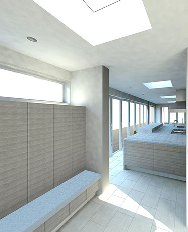 A large island is the focal point of the space that has been designed for kids to work after school while interacting with their parents preparing evening meals. The existing kitchen cabinetry and appliances were repurposed to the lower level to provide not only a working kitchen during the renovation, but a secondary kitchen for large family gatherings and special events.