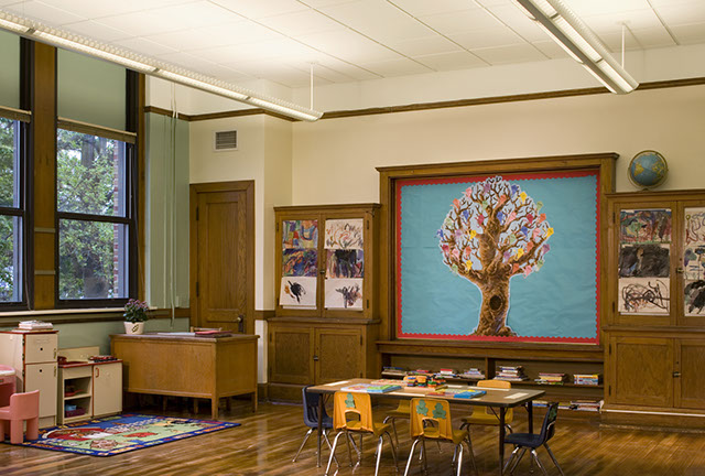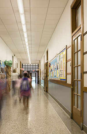 The project was awarded a grant from the Illinois Clean Energy Community Foundation to help offset the cost of the new fixtures. Peerless Lighting, whose fixtures were specified, was so enamored with the project they have included it in a national marketing campaign titled Lighting For People. A representative from Peerless Lighting indicated, “….so much of the school work we see is very similar; it was refreshing to see our product in the type of school most of us remembered from our childhoods.”