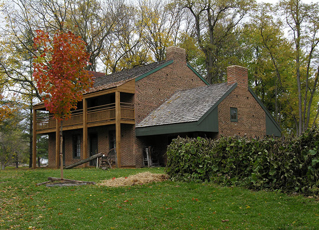 The Inn/Tavern was originally built with 2 two-level porches. The project’s goal was to replicate the porches in a manner that best represented the type of porch and materials used in the first half of the nineteenth century. The design took into account the architecture the Broadwell family was most familiar with in their time on their multi-year journey from New Jersey to Illinois including many years in Ohio.