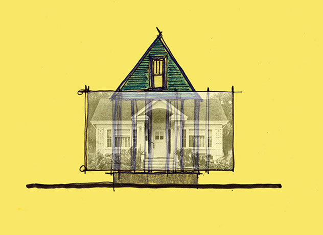 In addition, the designs conceive of historic photographs either of actual context or related drawings from plan book houses from the early twentieth century superimposed on the street facing facades. This unique artwork provides another way for these houses to have their own special identity.