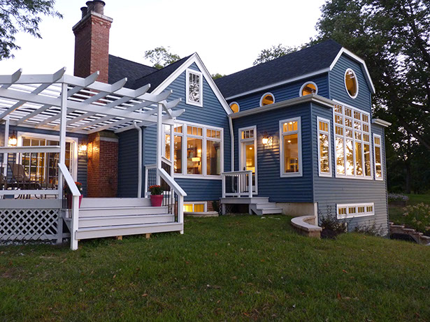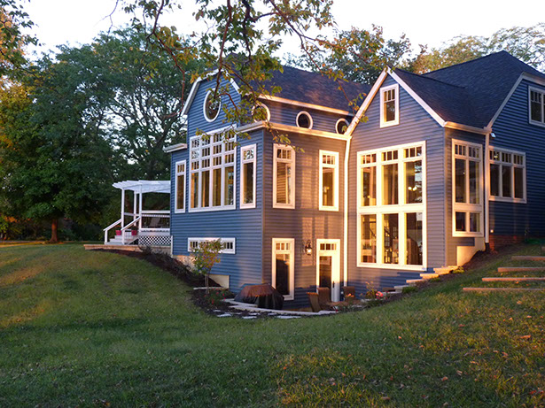The project involved an owner with a background in engineering and construction that wanted design alternatives explored for an addition to a house on Lake Springfield. The existing house was a small sweet simple Cape Cod-like structure typical of many constructed around the lake in approximately the 1940’s. Like many houses on Lake Springfield it simply was a house that could have existed anywhere and had no particular relationship to the lake.